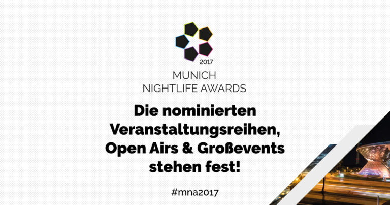 Die Nominierungen für die MUNICH NIGHTLIFE AWARDS 2017 in der Rubrik „Veranstaltungsreihen, Open Airs & Großevents“ stehen fest.